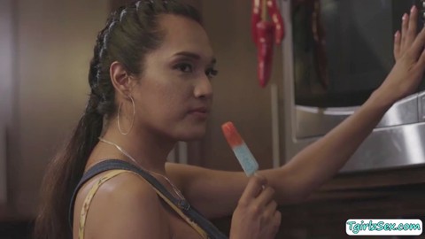 Curvy Latina TS Foxxy takes her boyfriend's hard cock in the ass